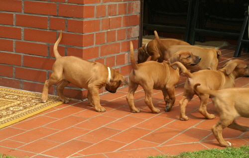 Am Freitag, dem 17. April 2009 haben wir mit Akela die Familie Risch , Pachika und " Alle Neune " Wonneproppen besucht. Die "Kleinen" sind fast 7 Wochen alt und der "Größte" hat schon die 6 Kilogramm Marke geknackt ! Wir haben uns sehr gefreut, wie prächtig die Welpen sich entwickelt haben.