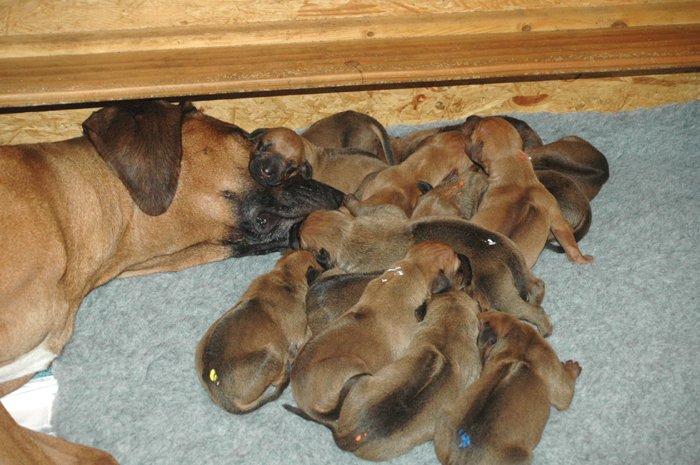 Der C- Wurf besteht aus 6 Rüden (1 Livernose) und 7 Hündinnen ( 1 Livernose). Es sind große kräftige und vitale Welpen ,die leichteste Hündin wog 490 g und die Schwerste 570 g. Der leichteste Rüde wog 530 g und der Schwerste 570 g. Es ist ein wunderschöner und gleichmässiger Wurf, der unsere Erwartungen mehr als erfüllt hat.