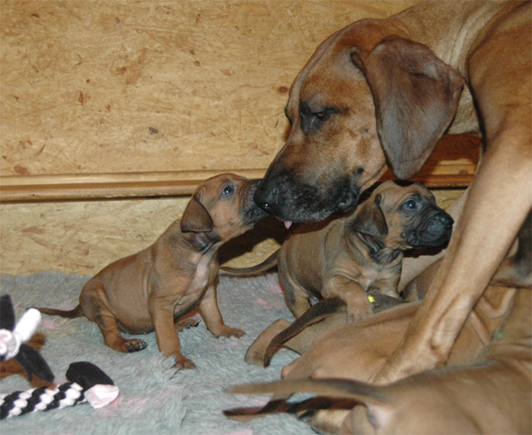 Nun gehen die Welpen in die vierte Woche ... sie entwickeln sich prächtig und haben Körpergewichte zwischen 2.200 g und 2.400 g